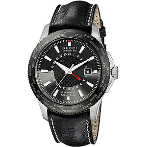 G TIMELESS GMT AUTOMATIC 44MM STEEL BLACK LEATHER