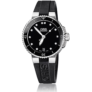 AQUIS DATE DIAMONDS AUTOMATIC 36MM STEEL BLACK RUBBER